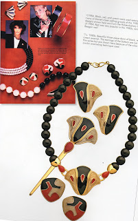This is a scan of the page number 267 of "Monet the master jewelers" by Alice Vega (A must buy for any vintage jewellery addict) The similar brooch is in cream, black and red enamel where as the Barcs brooch is in black and blue enamel. Now just wondering is there a whole set by Barcs in black and blue?